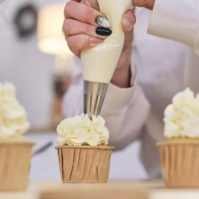 - Ajoutez le sucre glace sans cesser de fouetter, jusqu’à obtenir une crème montée bien lisse et ferme. Réservez au frais jusqu’à utilisation.