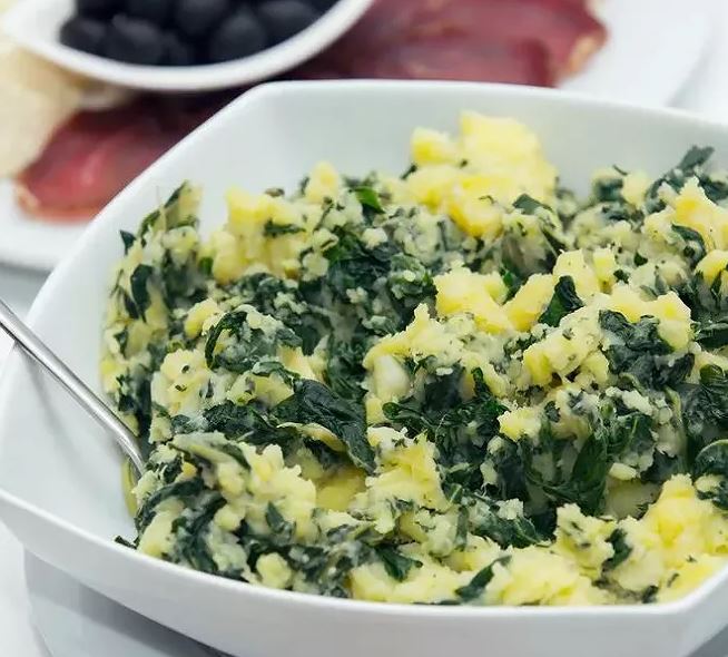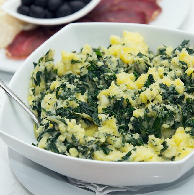 5 – Dès que les pommes de terre sont cuites, écrasez les au presse purée. Ajoutez-y l’ail et le lait et mélanger. Ajoutez la crème, salez et poivrez et mélangez de nouveau.