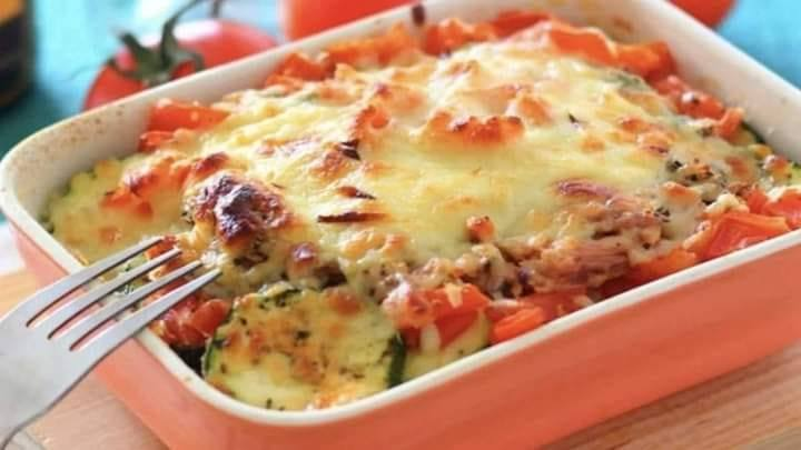 - Disposez une couche de courgettes dans le plat, suivie d’une couche de tomates. Assaisonnez chaque couche avec du sel et du poivre selon votre goût.