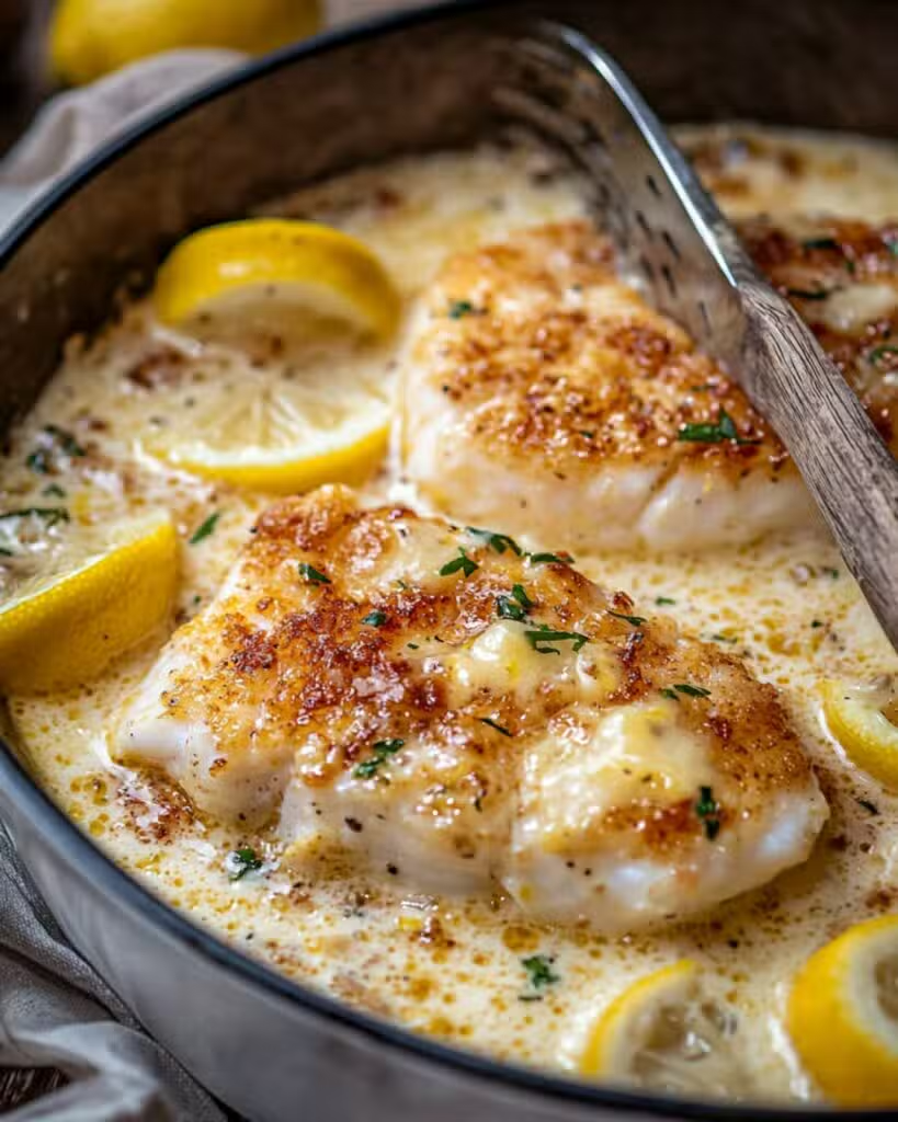Dos de Cabillaud à la Crème de Parmesan au Citron