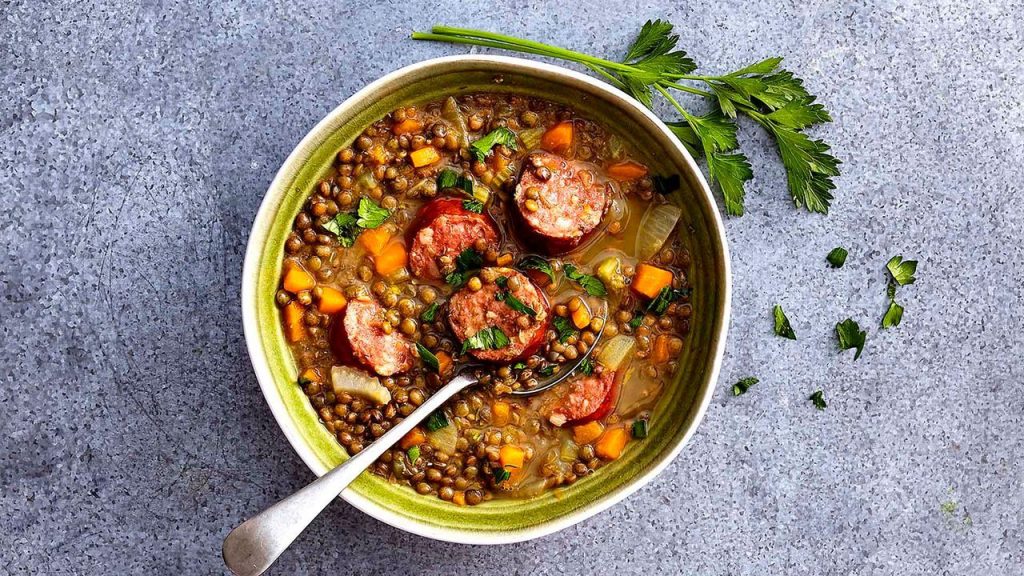 Soupe de lentilles et saucisse de Morteau