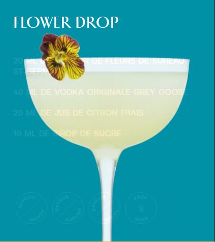 4 – Pressez délicatement un zeste de citron sur la boisson pour libérer l’huile et jetez-le, puis garnissez de fleurs comestibles (facultatif).
