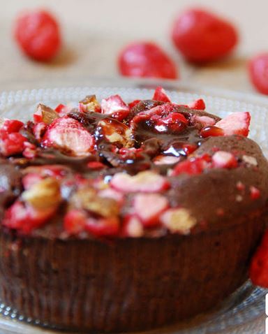 Petits coulants au chocolat et aux pralines roses #