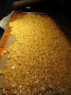 our environ 1 kg 250 de nougatine. Utilisée pour : socle de pièce montée, décor.