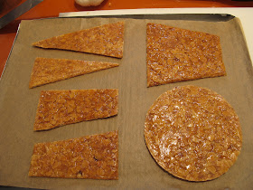 Dés que la nougatine se fige un peu, détailler les formes souhaitées.