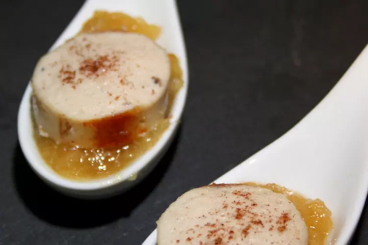 - Pour finirDisposer un peu de compote tiède dans les cuillères puis les rondelles de boudin par dessus, enfin parsemer d’un peu de cannelle moulue.