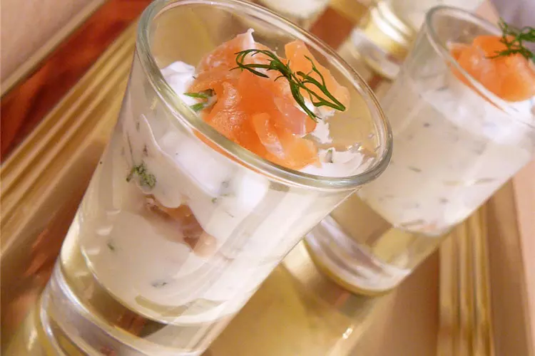 Verrines de saumon fumé, ricotta, ciboulette et aneth