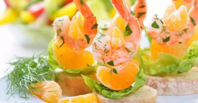 - Piquez une crevette marinée et deux quartiers de clémentines, en les alternant, sur chaque cure-dent.