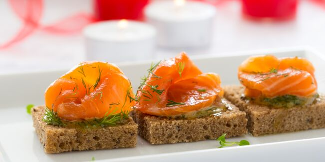 - Détaillez le pain en tranches puis en carrés. Coupez le saumon en lanières.