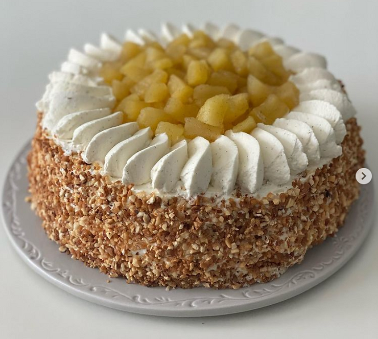 3) Garnir le centre de crème diplomate et déposer les pommes fondantes