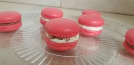 5-Monter la crème comme une chantilly à l’aide du batteur ou du robot et garnir les coques de macarons.