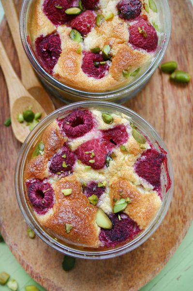 Versez la préparation dans le moule (silicone, antiadhésif ou beurré et fariné) et répartissez les framboises sur le dessus.