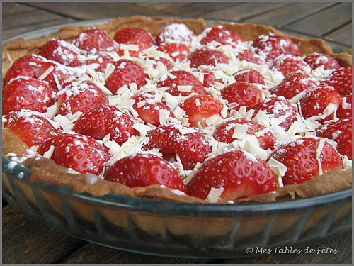 5 – Etalez ce mélange sur la pâte, puis mettre les autres fraises coupées  en deux.