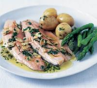 8 – Disposez les truites sur le plat de service chaud, nappez-les avec la sauce, saupoudrez de persil haché.