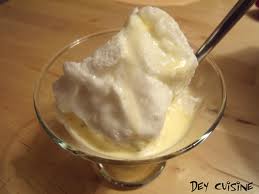 3 – Déverser dans un saladier, fouetter et disposer les blancs en neige.